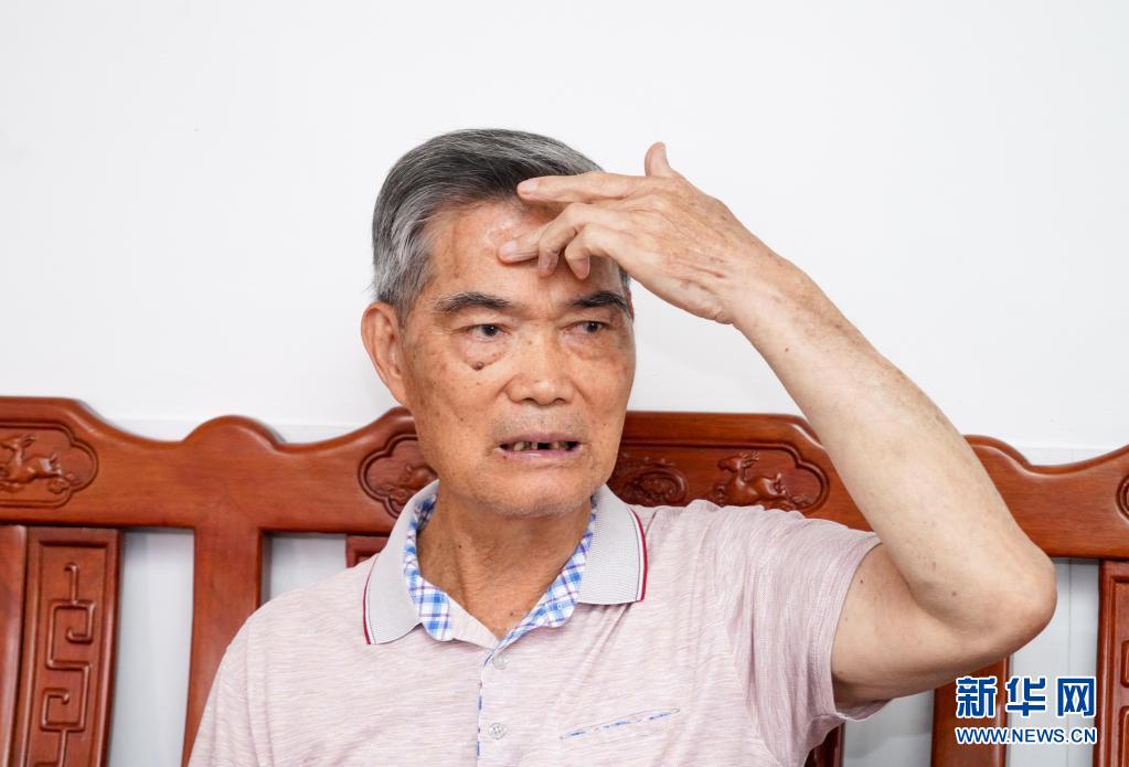 麥賢得額頭上還能看到當年戰(zhàn)斗時留下的傷疤(5月22日攝)。新華社發(fā)(欒鋮 攝)