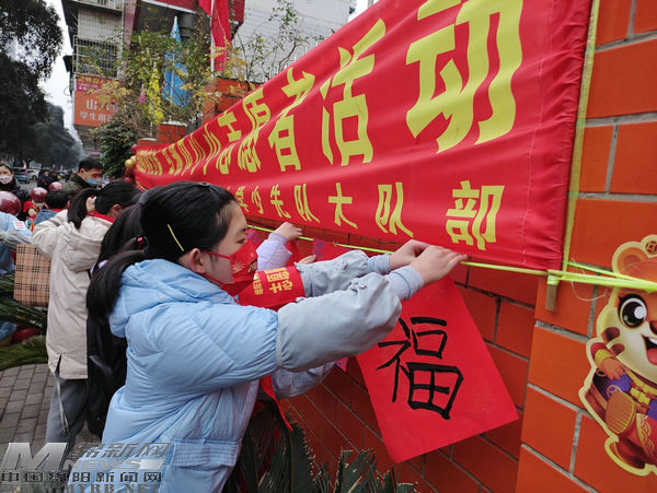 當(dāng)日上午,綿陽(yáng)市涪城區(qū)南河路實(shí)驗(yàn)小學(xué)門(mén)口,實(shí)小紅領(lǐng)巾志愿者們正在聚精會(huì)神地書(shū)寫(xiě)春聯(lián),引來(lái)了不少市民圍觀和稱(chēng)贊。圍墻邊掛滿了一幅幅春聯(lián)和福字,增添了節(jié)日的喜慶。一位市民捐贈(zèng)了10元錢(qián),選擇了一副寫(xiě)有“財(cái)運(yùn)亨通全家樂(lè) 事業(yè)有成滿堂春”的春聯(lián)。她說(shuō),既體驗(yàn)到了年味,又捐了錢(qián)做了好事,感覺(jué)非常開(kāi)心。一位家長(zhǎng)說(shuō):“我家娃兒練習(xí)書(shū)法有幾年了,沒(méi)想到還能以這種方式來(lái)獻(xiàn)愛(ài)心。我們的捐款,也是對(duì)孩子學(xué)習(xí)成果的認(rèn)可,能鼓勵(lì)他們繼續(xù)學(xué)習(xí)書(shū)法。”
