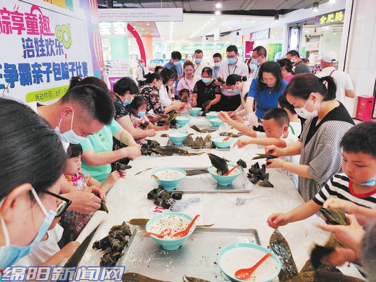 “涪娃”歡樂包粽子(綿報融媒實習記者 王儻 攝)