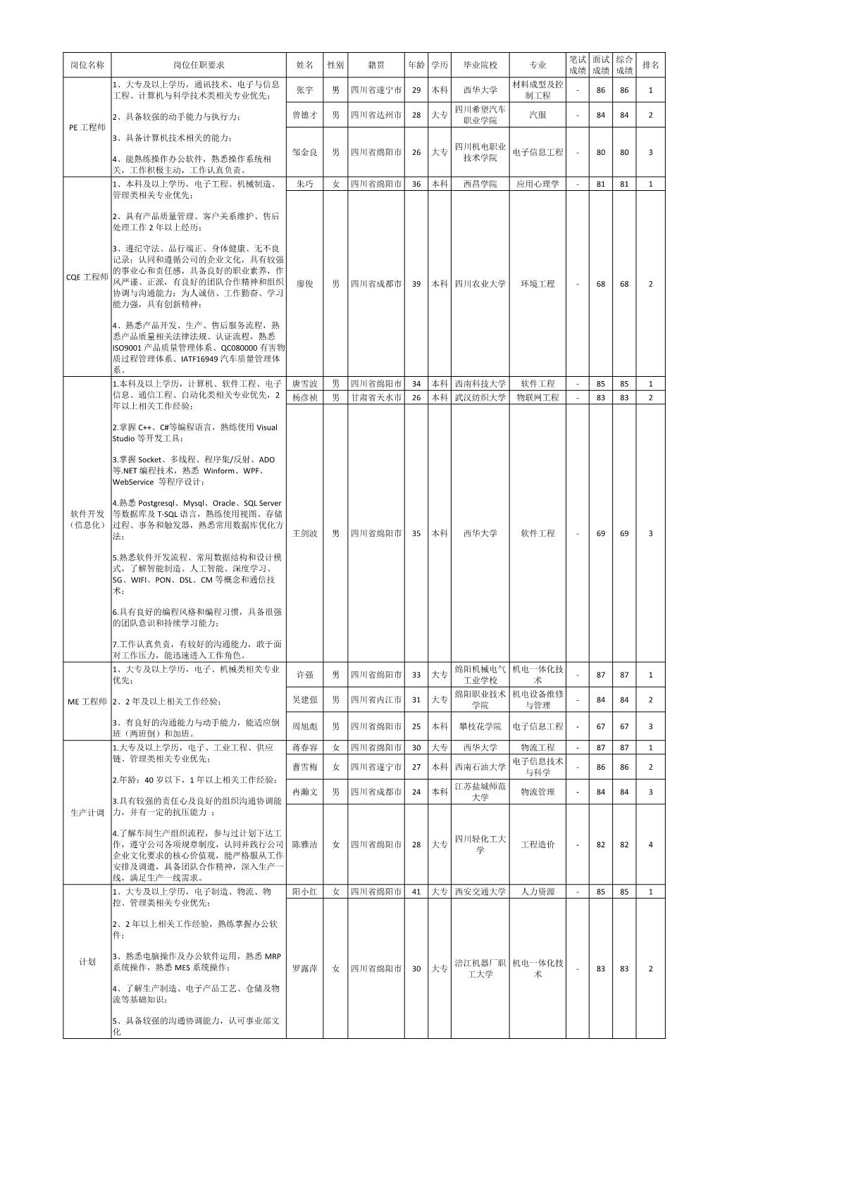 根據(jù)四川九州電子科技股份有限公司發(fā)布的招聘公告及招聘相關(guān)規(guī)定,經(jīng)筆試、面試等程序,現(xiàn)將筆試(面試)成績予以公示。
