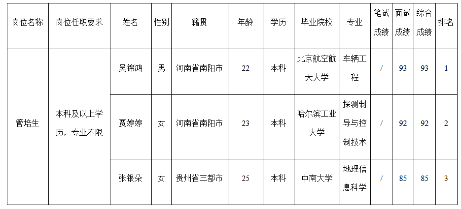 根據(jù)四川波鴻實業(yè)有限公司發(fā)布的招聘公告及招聘相關規(guī)定,經(jīng)面試,現(xiàn)將威斯卡特工業(yè)(中國)有限公司管理培訓生崗位面試成績予以公示。