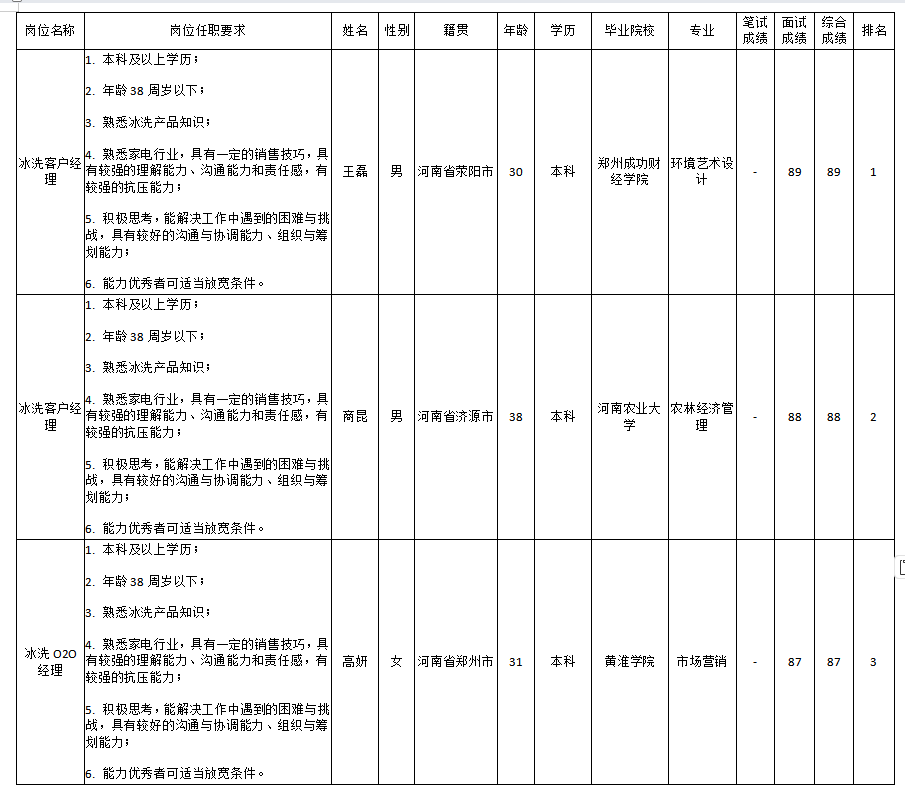 根據(jù)四川智易家網(wǎng)絡(luò)科技有限公司(長虹·美菱中國區(qū))發(fā)布的招聘公告及招聘相關(guān)規(guī)定,經(jīng)初試、復(fù)試等程序,現(xiàn)將面試成績予以公示。