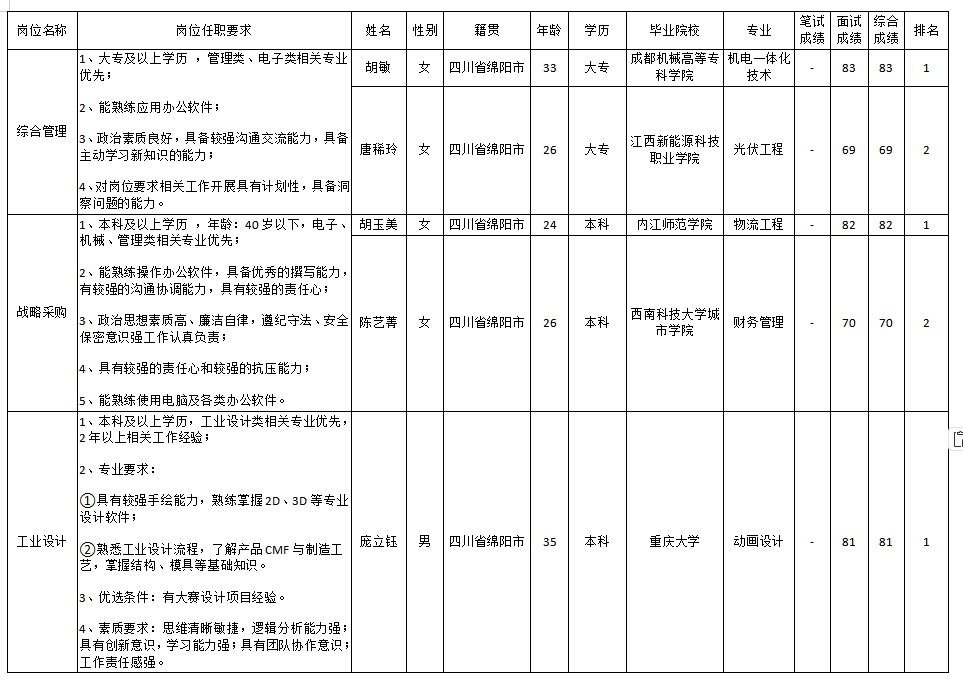 根據(jù)四川九州電子科技股份有限公司發(fā)布的招聘公告及招聘相關規(guī)定,經(jīng)筆試、面試等程序,現(xiàn)將筆試(面試)成績予以公示。