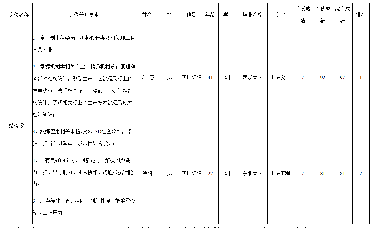 根據(jù)長虹空調(diào)公司發(fā)布的招聘公告及招聘相關(guān)規(guī)定,經(jīng)面試等程序,現(xiàn)將面試成績予以公示。