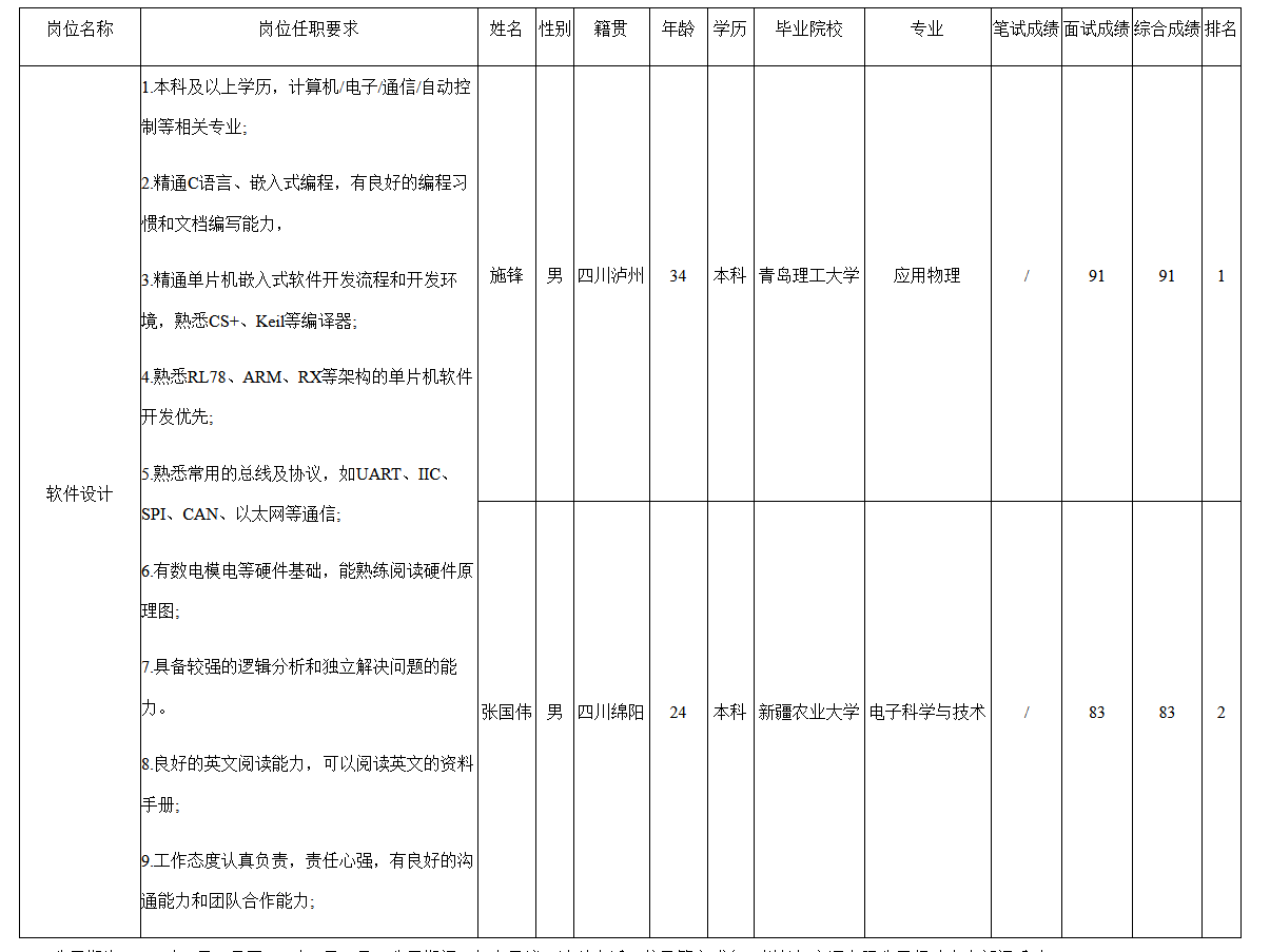 根據(jù)長虹空調(diào)公司發(fā)布的招聘公告及招聘相關(guān)規(guī)定,經(jīng)面試等程序,現(xiàn)將面試成績予以公示。