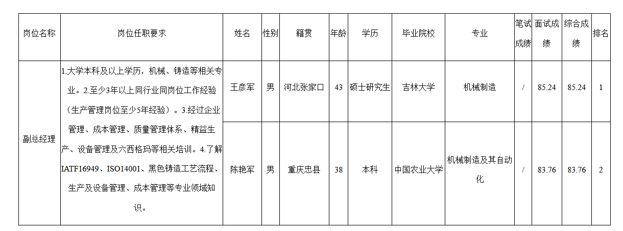 根據(jù)四川波鴻實業(yè)有限公司發(fā)布的招聘公告及招聘相關(guān)規(guī)定,經(jīng)面試后,現(xiàn)將四川威斯卡特副總經(jīng)理面試成績予以公示。
