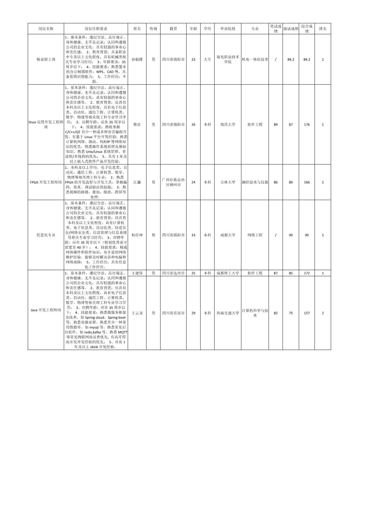 根據(jù)四川湖山電器股份有限公司發(fā)布的招聘公告及招聘相關規(guī)定,經(jīng)筆試、面試等程序,現(xiàn)將筆試(面試)成績予以公示。