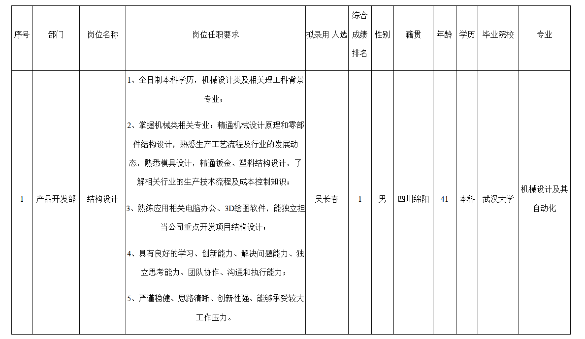 根據(jù)四川長(zhǎng)虹空調(diào)有限公司發(fā)布的招聘公告及招聘相關(guān)規(guī)定,經(jīng)面試、體檢等程序,擬錄用吳長(zhǎng)春到長(zhǎng)虹空調(diào)工作,現(xiàn)予以公示,具體情況如下: