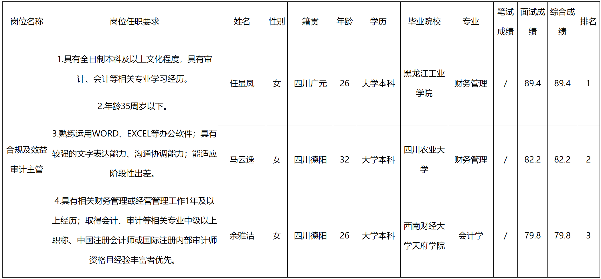 根據(jù)四川長虹置業(yè)有限公司發(fā)布的招聘公告及招聘相關(guān)規(guī)定,經(jīng)筆試、面試等程序,現(xiàn)將筆試(面試)成績予以公示。