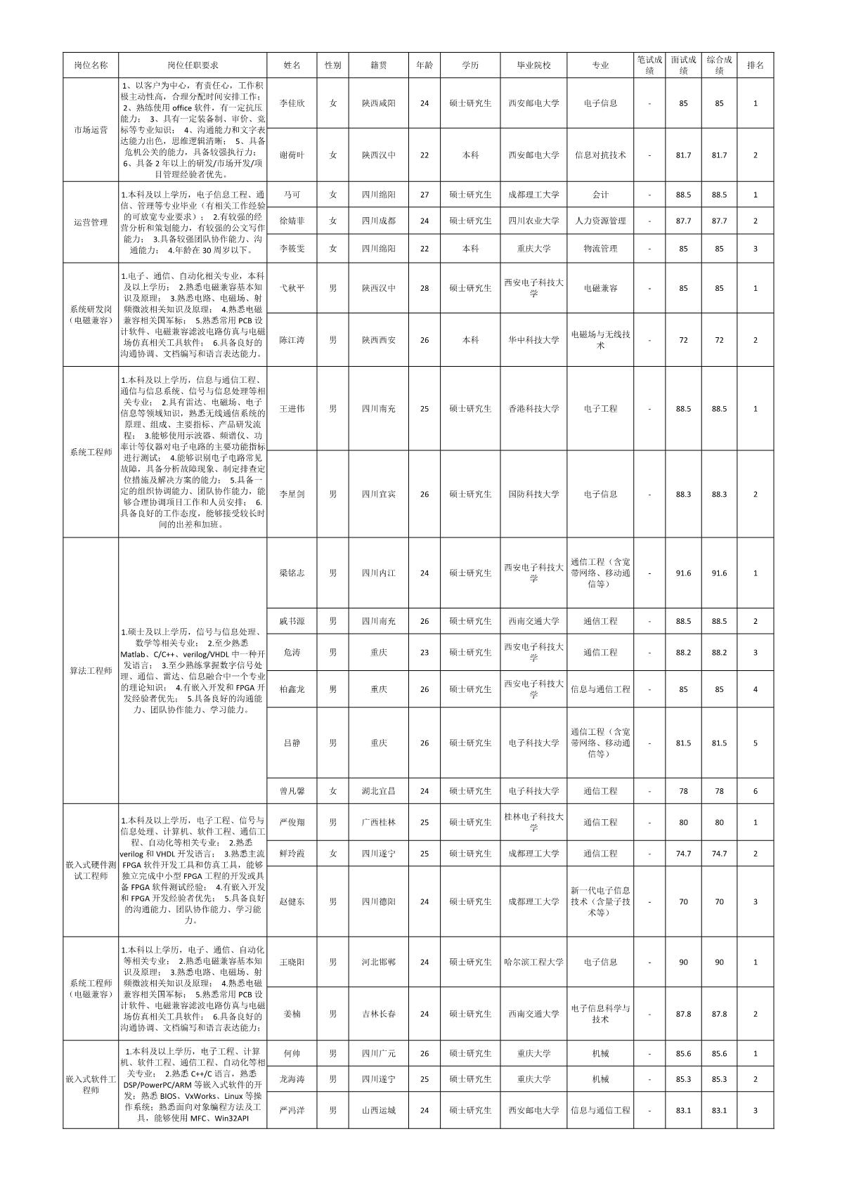 根據(jù)四川九洲電器集團(tuán)有限責(zé)任公司發(fā)布的招聘公告及招聘相關(guān)規(guī)定,經(jīng)筆試、面試等程序,現(xiàn)將筆試(面試)成績(jī)予以公示。