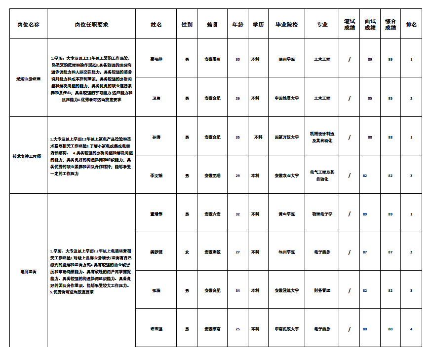 根據(jù)合肥長虹美菱生活電器有限公司發(fā)布的招聘公告及招聘相關(guān)規(guī)定,經(jīng)筆試、面試等程序,現(xiàn)將筆試(面試)成績予以公示。