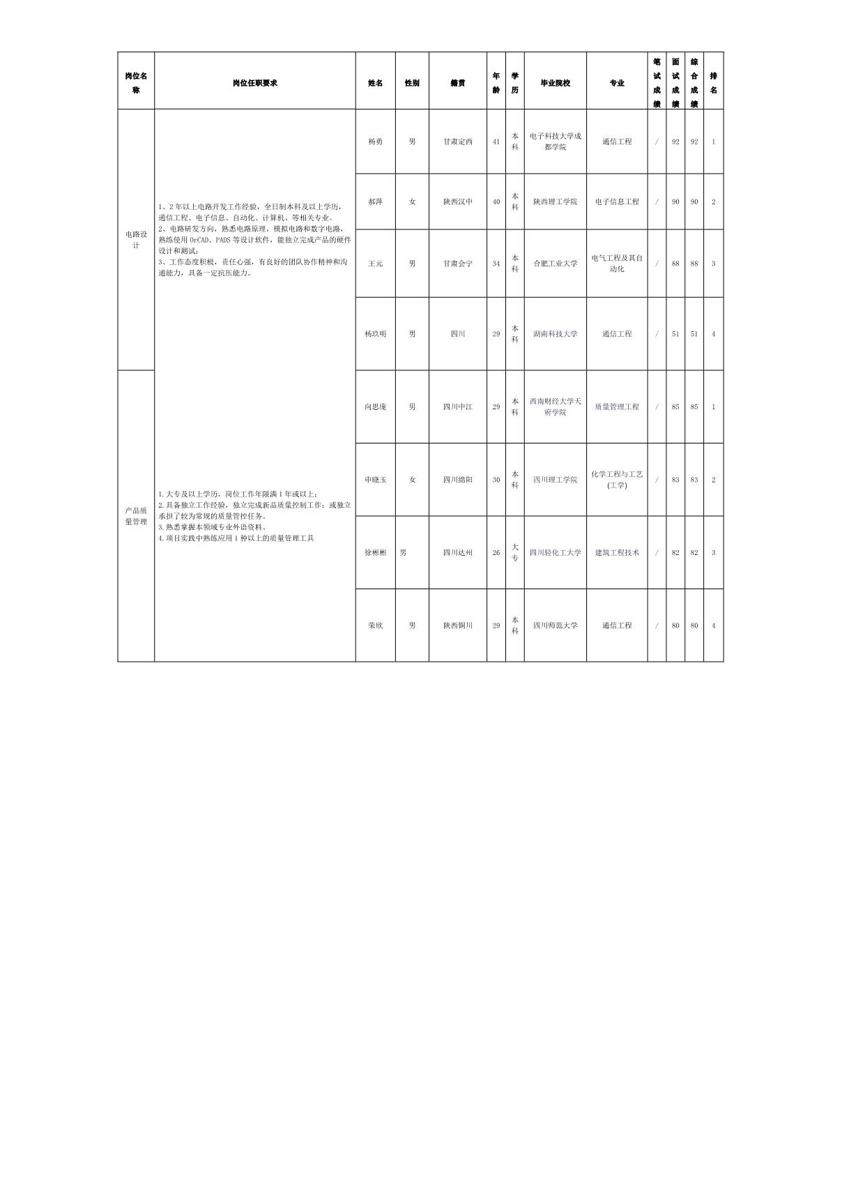 根據(jù)四川長(zhǎng)虹電器股份有限公司(智慧顯示)發(fā)布的招聘公告及招聘相關(guān)規(guī)定,經(jīng)筆試、面試等程序,現(xiàn)將筆試(面試)成績(jī)予以公示。