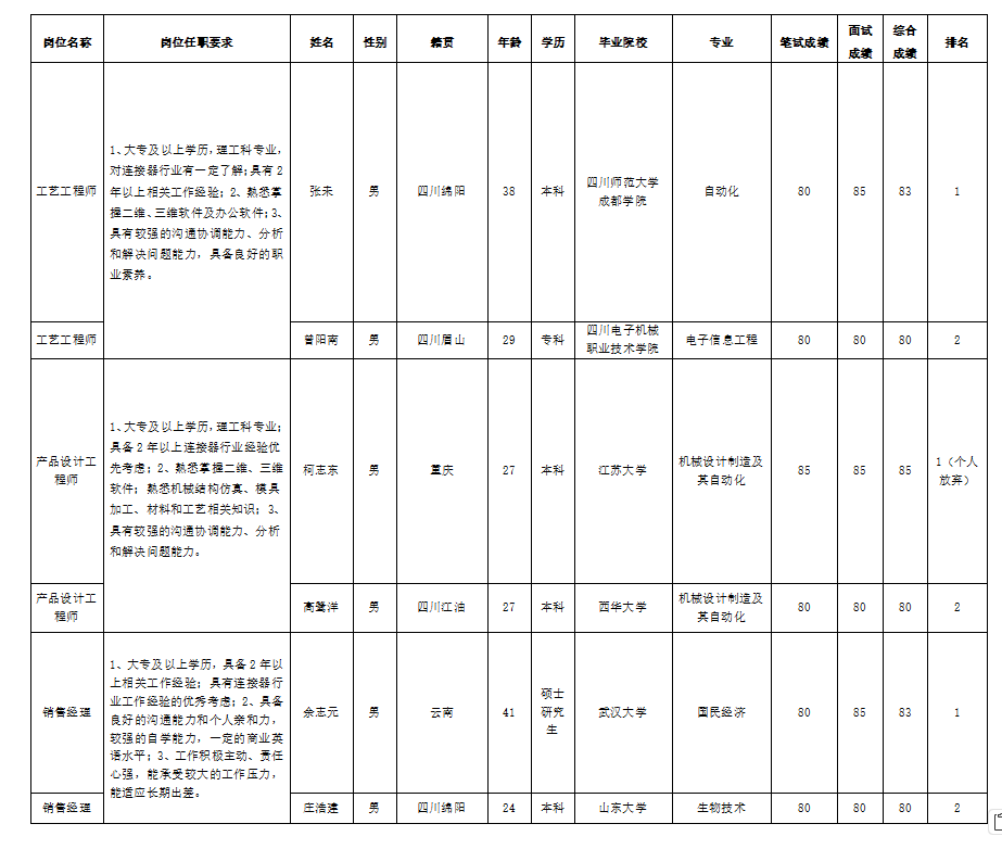 根據(jù)四川華豐科技股份有限公司發(fā)布的招聘公告及招聘相關規(guī)定,經(jīng)筆試、面試等程序,現(xiàn)將筆試(面試)成績予以公示。