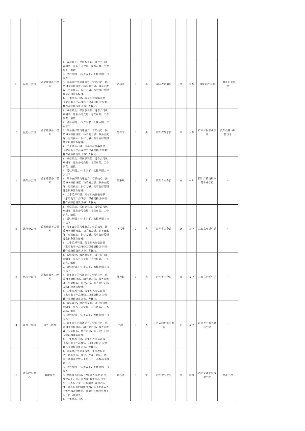 根據(jù)四川快益點電器服務(wù)連鎖有限公司發(fā)布的招聘公告及招聘相關(guān)規(guī)定,經(jīng)面試、體檢等程序,擬錄用以下同志到四川快益點電器服務(wù)連鎖有限公司工作,現(xiàn)予以公示,具體情況如下: