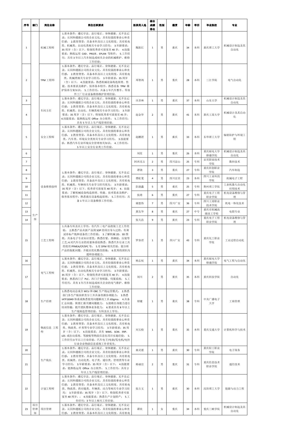根據(jù)重慶九州智造科技有限公司發(fā)布的招聘公告及招聘相關規(guī)定,經筆試、面試、考察、體檢等程序,擬錄用曾傳良等同志到重慶九州智造科技有限公司工作,現(xiàn)予以公示,具體情況如下: