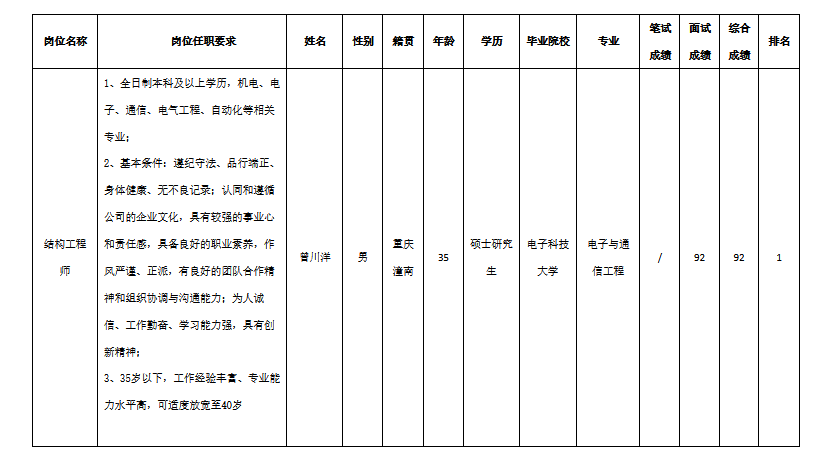 根據(jù)零八一電子集團(tuán)四川紅輪機(jī)械有限公司發(fā)布的招聘公告及招聘相關(guān)規(guī)定,經(jīng)筆試、面試等程序,現(xiàn)將筆試(面試)成績(jī)予以公示。