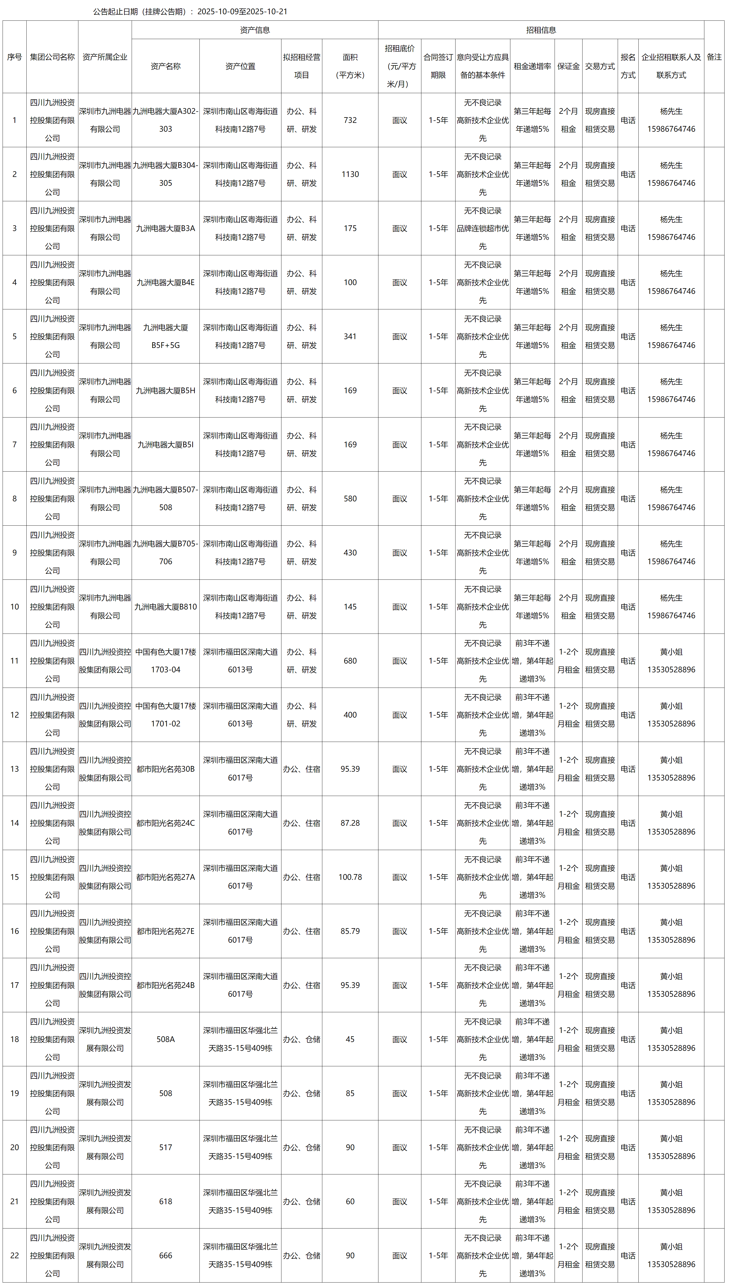 深圳市九洲光電子有限公司代管房產(chǎn)九洲電器大廈、中國有色大廈、都市陽光名苑、桑達(dá)409棟、長城大廈出租公告