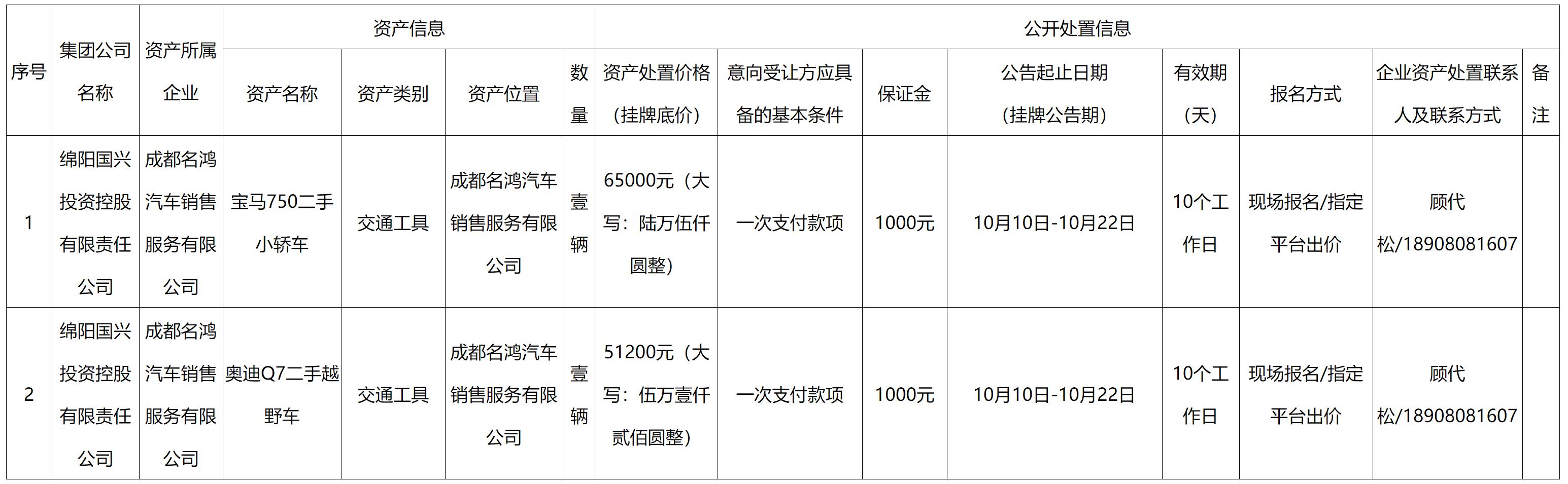 綿陽國興投資控股有限責(zé)任公司資產(chǎn)處置公告