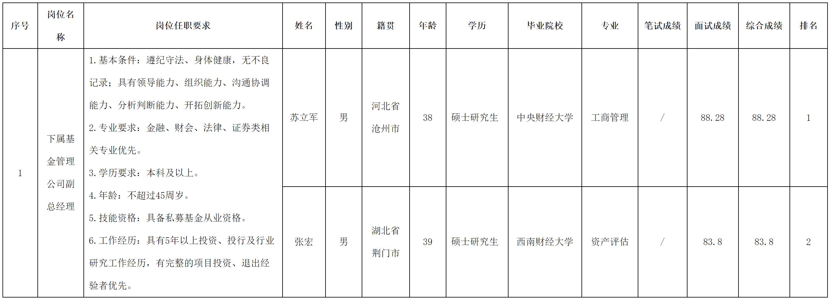 根據(jù)四川長虹創(chuàng)新投資有限公司發(fā)布的招聘公告及招聘相關(guān)規(guī)定,現(xiàn)將測試成績予以公示。
