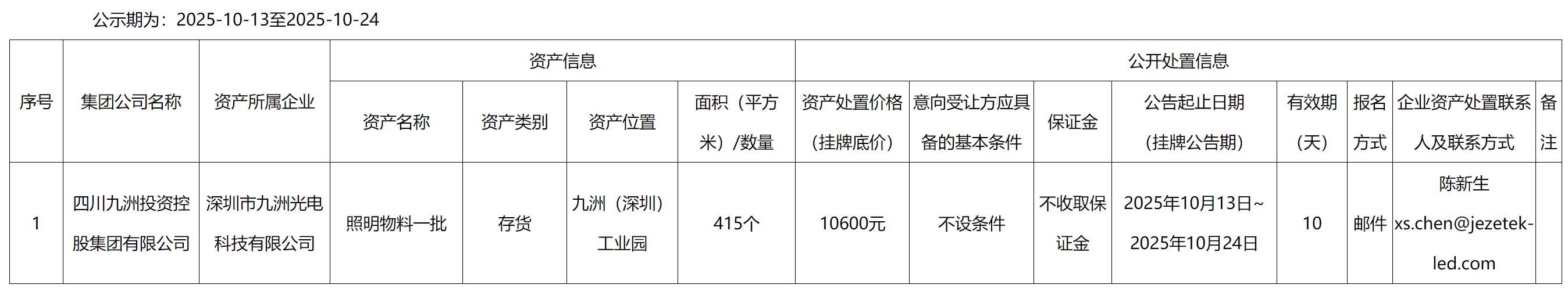 深圳市九洲光電科技有限公司照明物料處置公告