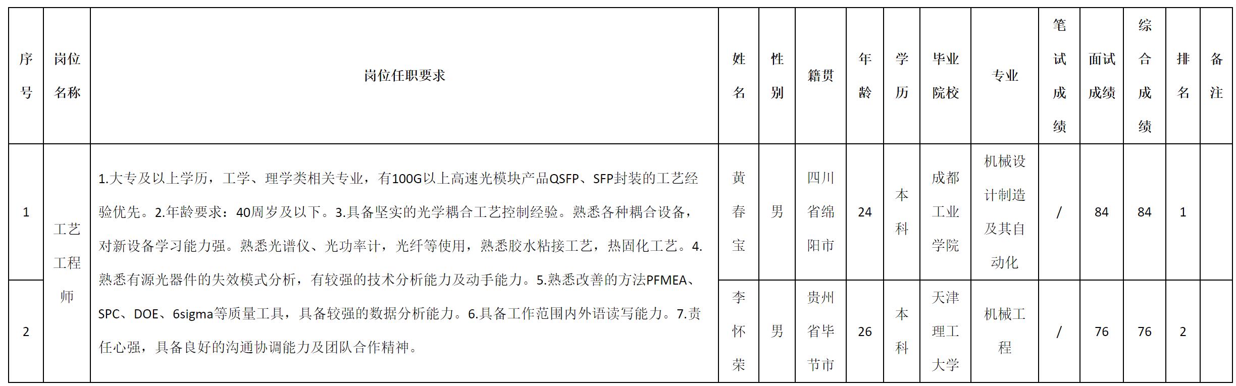 根據(jù)四川九華光子通信技術(shù)有限公司發(fā)布的招聘公告及招聘相關(guān)規(guī)定,現(xiàn)將測試成績予以公示。