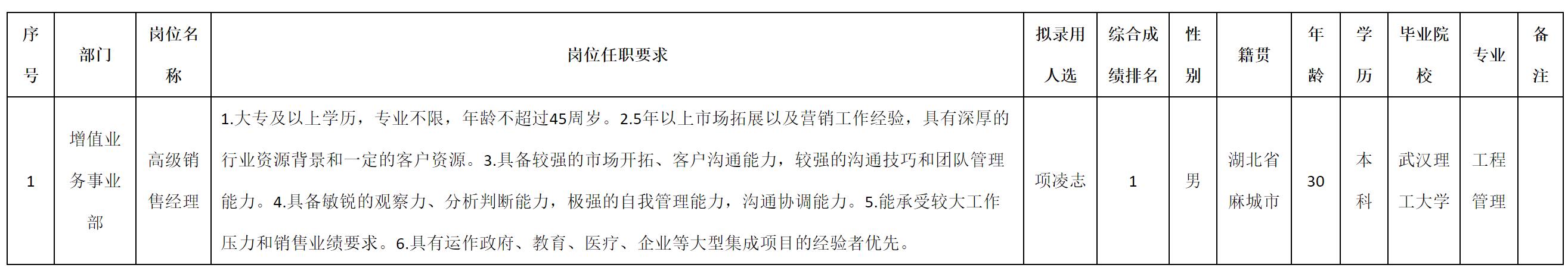 根據(jù)四川科瑞軟件有限責任公司發(fā)布的招聘公告及招聘相關規(guī)定,經(jīng)測試、考察、體檢等程序,擬錄用項凌志同志到四川科瑞軟件有限責任公司工作,現(xiàn)予以公示,具體情況如下: