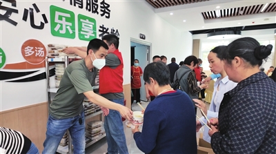 老人們在幸福餐廳領(lǐng)餐