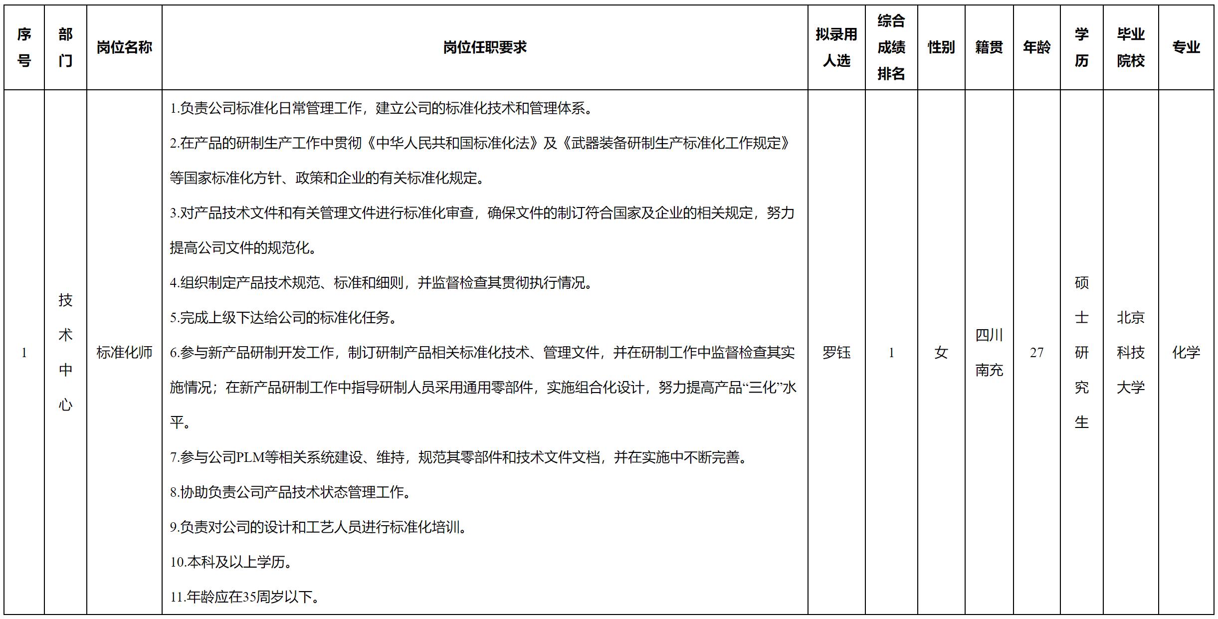 根據(jù)四川長(zhǎng)虹電源股份有限公司發(fā)布的招聘公告及招聘相關(guān)規(guī)定,經(jīng)測(cè)試、考察、體檢等程序,擬錄用羅鈺同志到我司工作,現(xiàn)予以公示,具體情況如下: