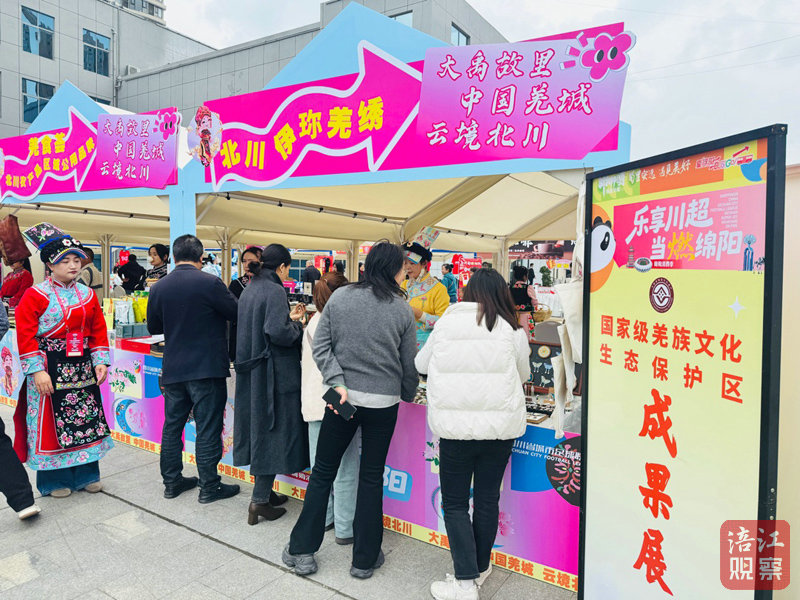 旁邊還有北川水磨漆、精巧的羌繡工藝品,野生菌菇、高山茶葉、百花蜜等土特產(chǎn)琳瑯滿目,以及“2025年川超及羌?xì)v年期間商旅優(yōu)惠活動”、北川旅游線路等。