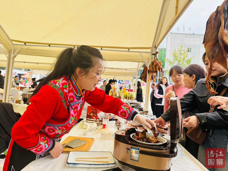 看川超,走北川過羌年。“來嘗嘗我們北川的老臘肉!”另一邊,本次集市設(shè)置的北川展位前,色澤紅亮、香氣撲鼻的臘肉臘腸引得食客紛紛駐足。銷售人員一邊熟練地切片分裝,一邊介紹:“我們的豬肉來自北川高山,用古法熏制,就是這個家鄉(xiāng)味!”