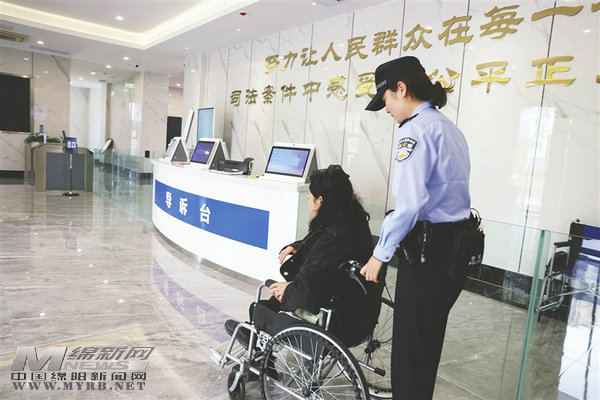 如果說“7×24”小時全天候自助服務拉近的是當事人與法院之間的物理距離,那么“服務不僅在窗口之內”的承諾,就是綿陽法院主動對接需求、將工作向前延伸的體現:針對特殊群體,開通綠色通道;在訴訟服務中心設置清晰醒目的指引標識,提供要素式起訴狀、答辯狀文書示范文本并引導幫助;實行公益律師輪流在訴訟服務大廳“值班”,每年提供法律咨詢三千余次;對訴訟服務中心窗口功能進行整合,單獨設置“辦不成事反映專窗”,專門接收人民群眾訴服方面合理訴求并協(xié)調辦理反饋;同步與行政審判部門積極配合,在訴訟服務中心設立行政訴訟實質化解工作站,由退休法官每日在崗負責行政訴訟的引導分流和協(xié)調化解……這些點滴細節(jié),匯聚成訴訟服務中心的“為民溫度”。