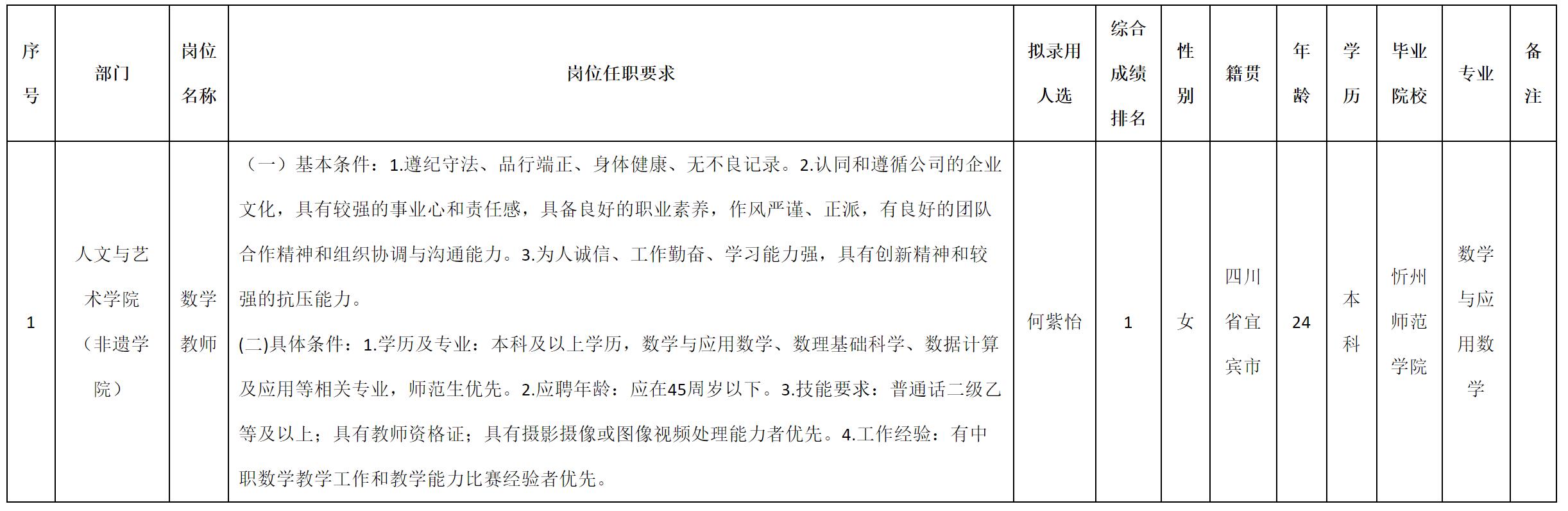 根據(jù)四川九洲教育投資管理有限公司發(fā)布的招聘公告及招聘相關規(guī)定,經(jīng)測試、考察、體檢等程序,擬錄用何紫怡同志到四川九洲教育投資管理有限公司工作,現(xiàn)予以公示,具體情況如下: