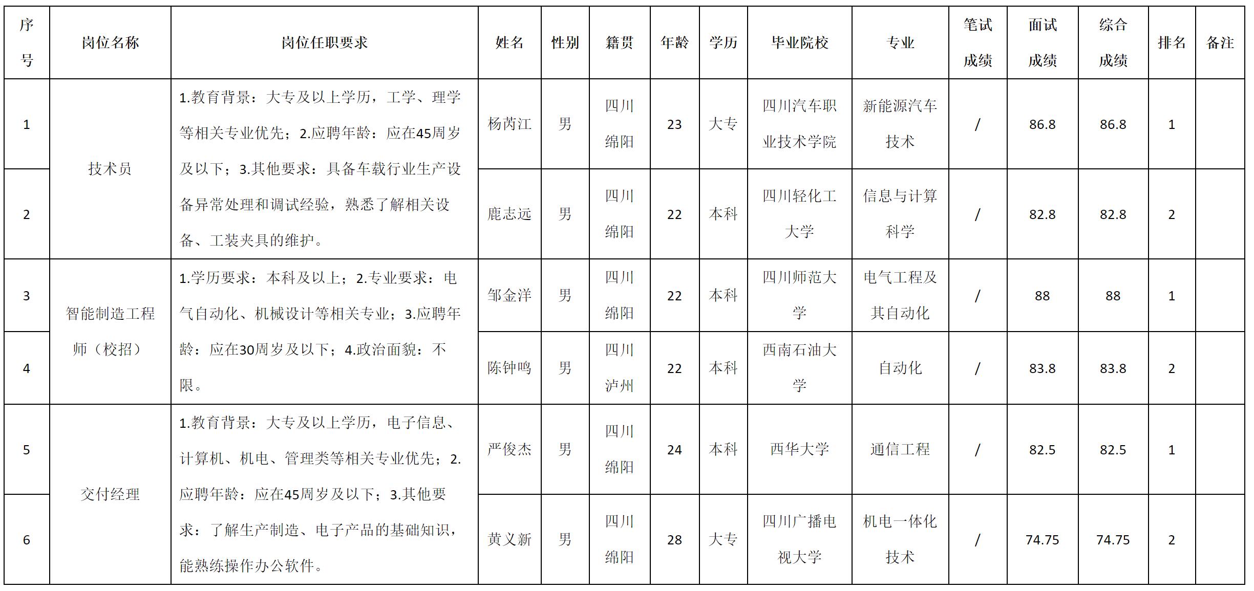 根據(jù)四川九州電子科技股份有限公司發(fā)布的招聘公告及招聘相關(guān)規(guī)定,現(xiàn)將測(cè)試成績(jī)予以公示。