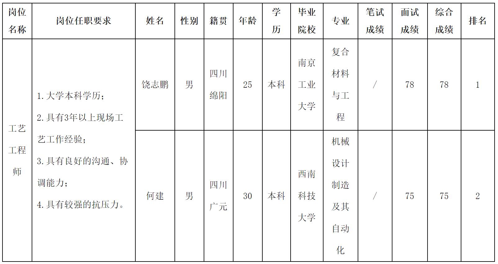 根據(jù)四川華豐科技股份有限公司發(fā)布的招聘公告及招聘相關(guān)規(guī)定,現(xiàn)將測試成績予以公示。