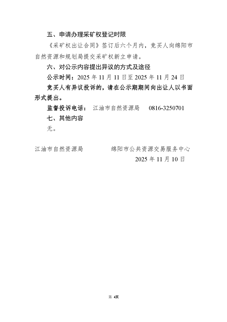 江油市馬角鎮(zhèn)大圓包建筑石料用白云巖石灰?guī)r礦采礦權(quán)拍賣出讓成交結(jié)果公示(綿礦招拍掛〔2025〕6號(hào))