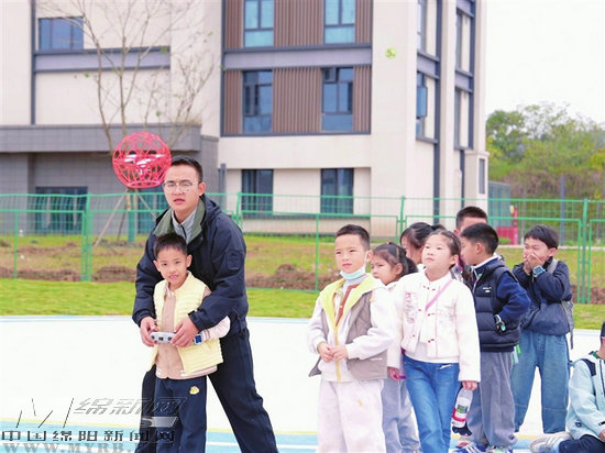 小學(xué)生在老師指導(dǎo)下學(xué)習(xí)操作無人機(jī)。 記者 胥江 攝