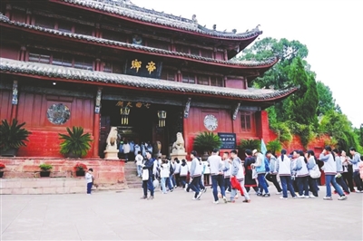 七曲山景區(qū)學(xué)子如潮。