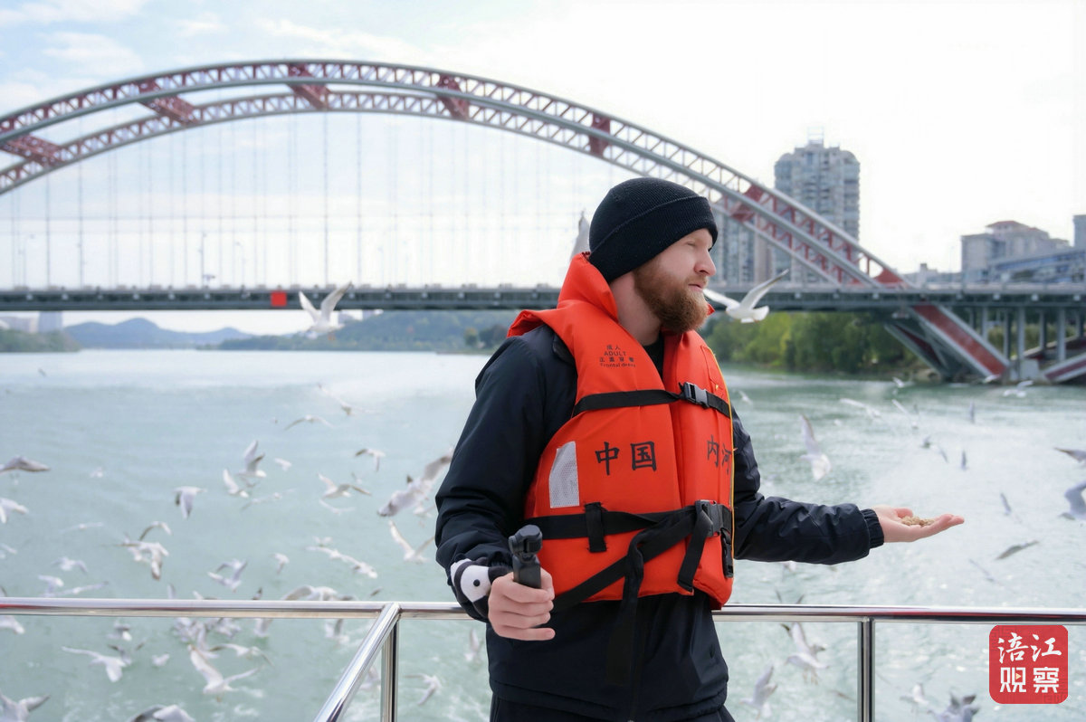 行程尾聲,外賓游覽三江碼頭,欣賞涪江、安昌江與芙蓉溪交匯處的生態(tài)景觀。初冬時節(jié),西伯利亞紅嘴鷗成群翩躚,展現(xiàn)綿陽人與自然和諧共生的城市畫卷。