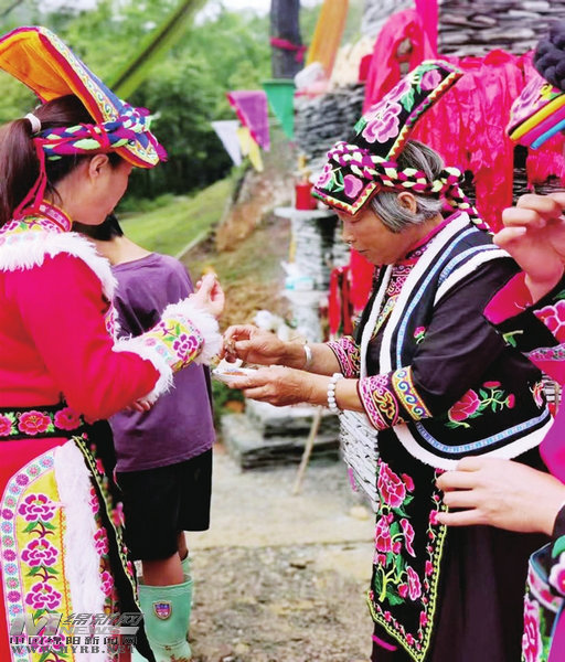 平武豆叩羌族鄉(xiāng)群眾盛裝迎客。 記者 李春梅 攝