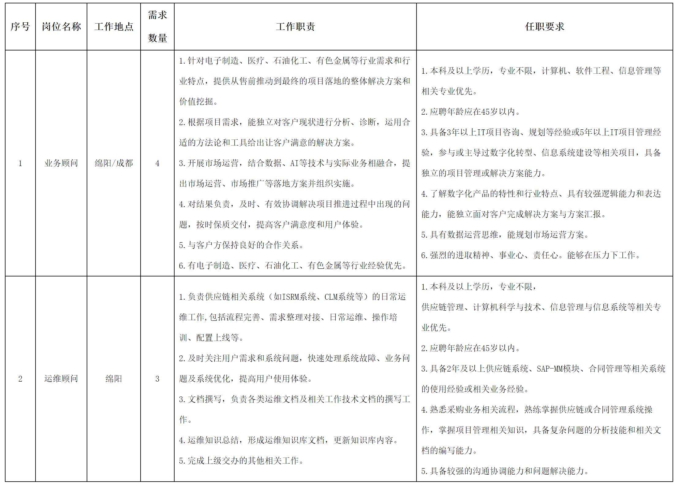 根據(jù)公司經(jīng)營(yíng)發(fā)展需要,面向社會(huì)公開招聘以下崗位: