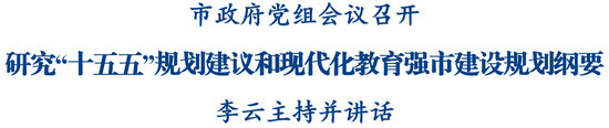 綿陽新聞網訊 11月24日,市政府黨組會議召開,研究“十五五”規(guī)劃建議和現代化教育強市建設規(guī)劃綱要。市委副書記、市政府黨組書記、市長李云主持會議并講話。