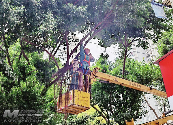 綠化工人修剪行道樹(shù)。 記者 蘭建春 攝