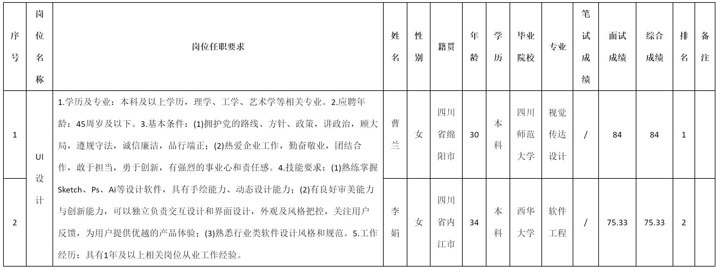 根據(jù)四川九強(qiáng)通信科技有限公司發(fā)布的招聘公告及招聘相關(guān)規(guī)定,現(xiàn)將測(cè)試成績(jī)予以公示。
