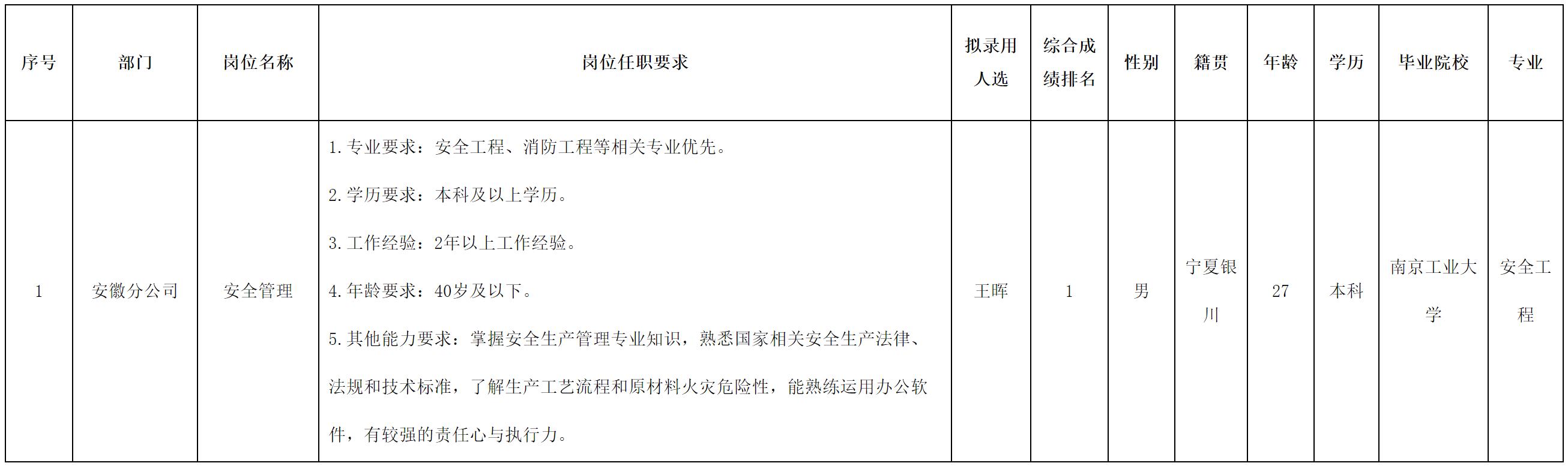 根據(jù)四川愛創(chuàng)科技有限公司發(fā)布的招聘公告及招聘相關(guān)規(guī)定,經(jīng)面試、考察、體檢等程序,擬錄用王暉同志到安徽分公司工作,現(xiàn)予以公示,具體情況如下: