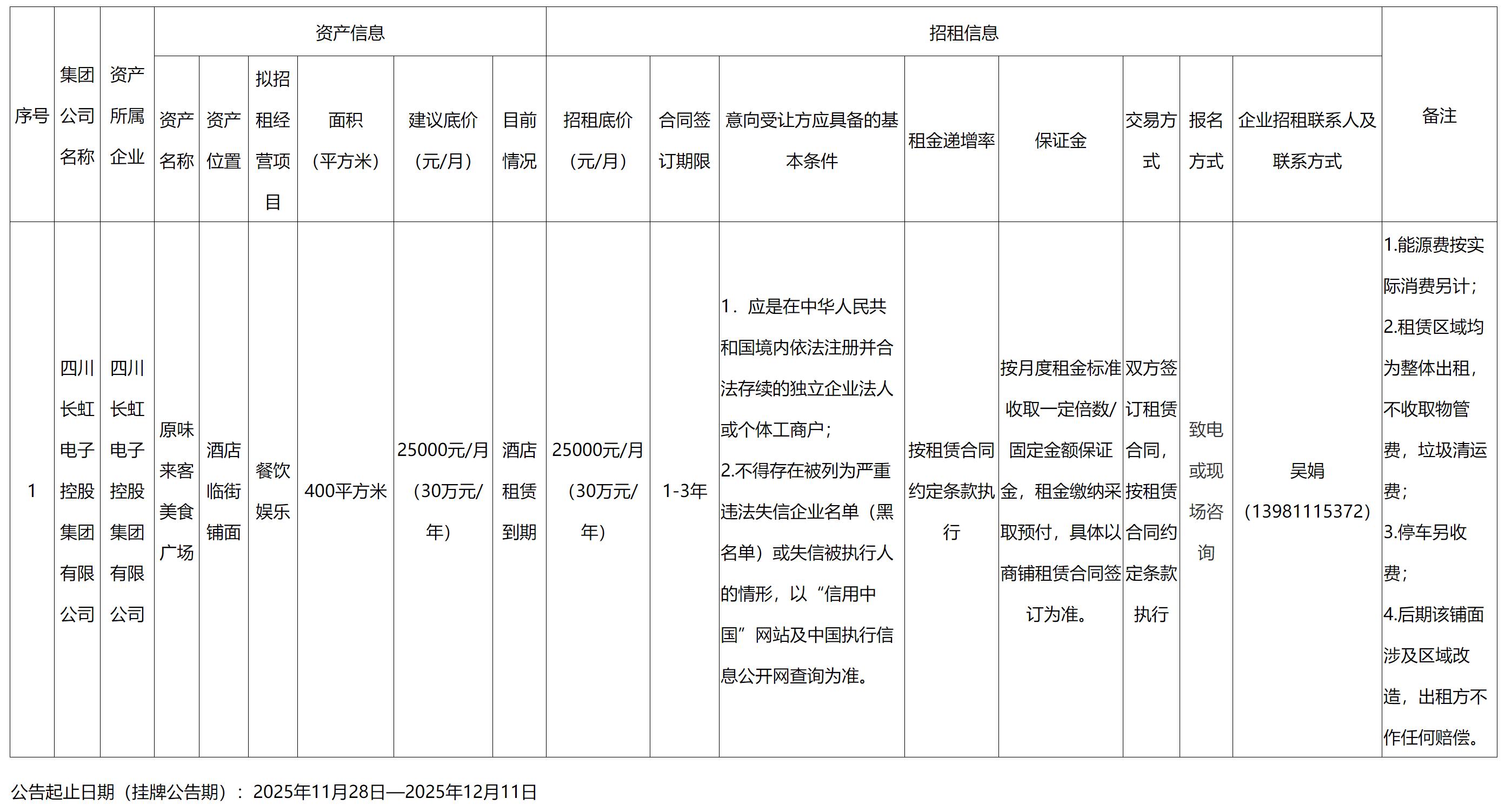 四川長虹國際酒店有限責(zé)任公司資產(chǎn)出租公告
