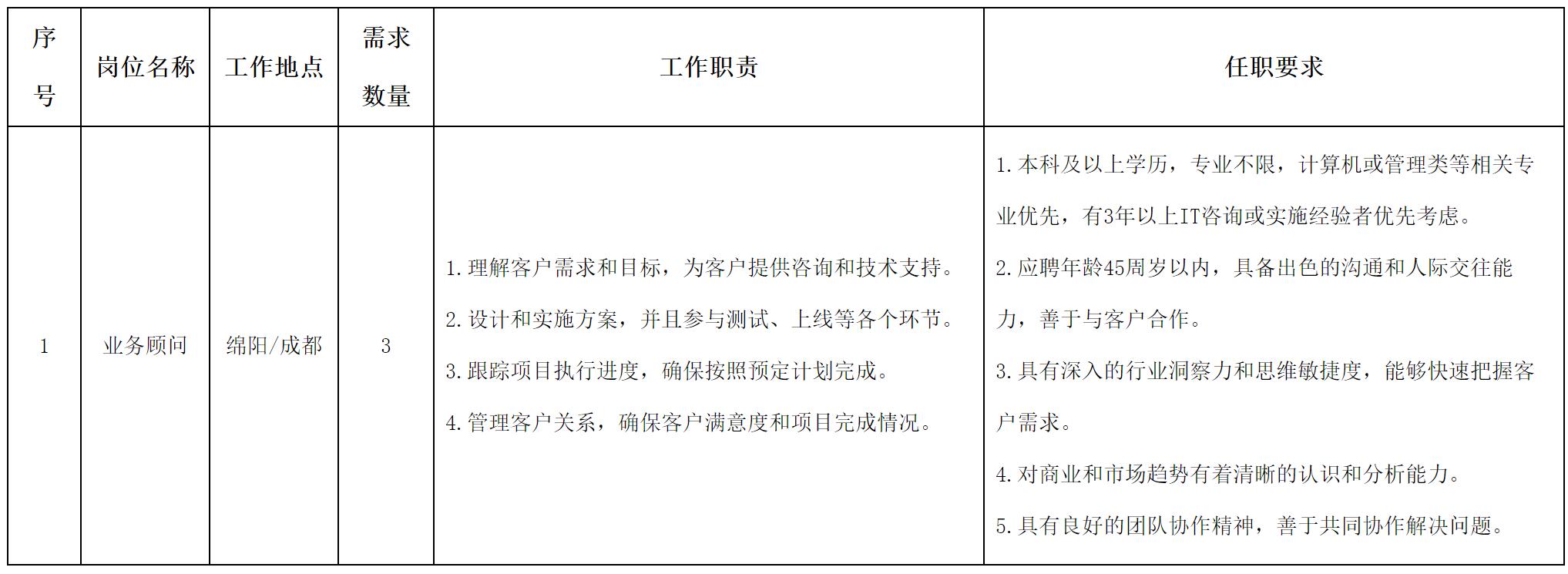 根據(jù)公司經(jīng)營發(fā)展需要,面向社會公開招聘以下崗位: