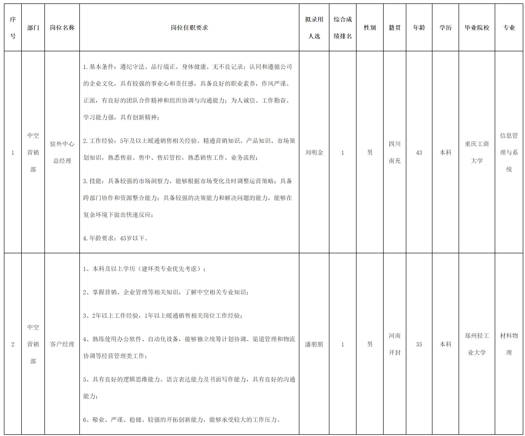 根據(jù)四川長虹空調(diào)有限公司發(fā)布的招聘公告及招聘相關(guān)規(guī)定,經(jīng)面試、測試、考察、體檢,擬錄用劉明金等同志到長虹空調(diào)工作,現(xiàn)予以公示,具體情況如下: