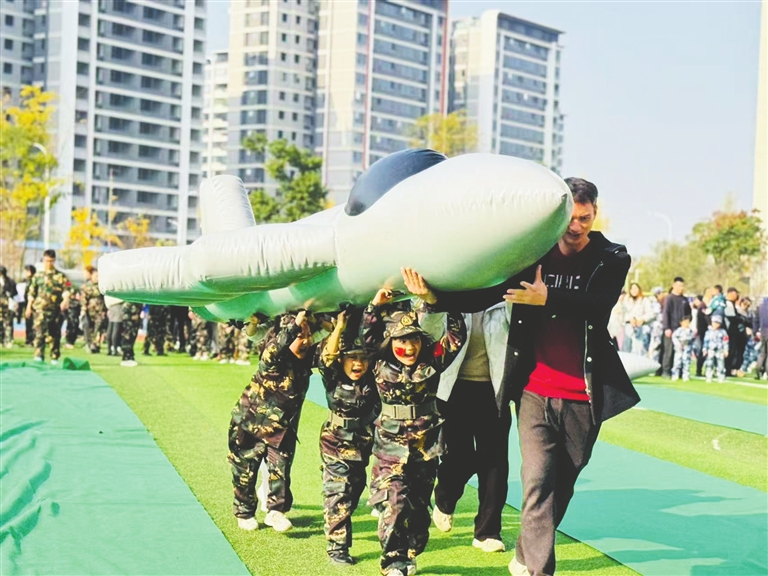 歡樂(lè)的軍事主題親子游戲。 記者 安崢 攝