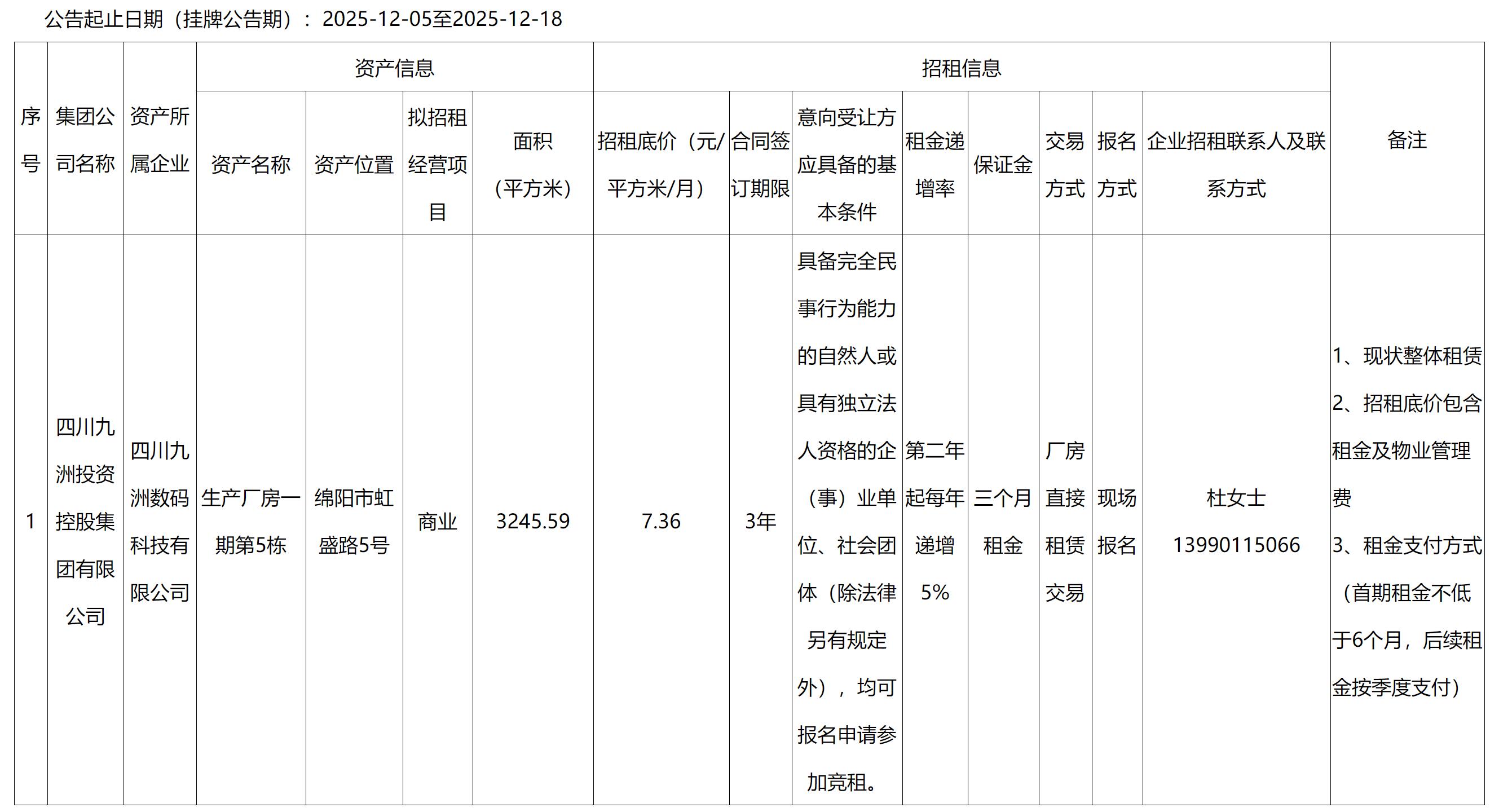 四川九洲千城商業(yè)管理有限公司園區(qū)項目部數碼工業(yè)園廠房出租公告