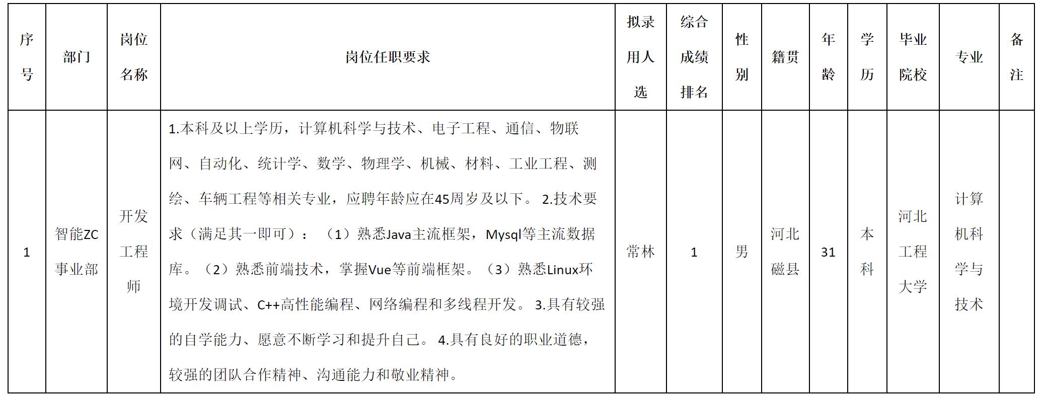 根據(jù)四川九洲投資控股集團(tuán)有限公司軟件與數(shù)據(jù)智能軍團(tuán)發(fā)布的招聘公告及招聘相關(guān)規(guī)定,經(jīng)測(cè)試、考察、體檢等程序,擬錄用常林同志到四川九洲投資控股集團(tuán)有限公司軟件與數(shù)據(jù)智能軍團(tuán)工作,現(xiàn)予以公示,具體情況如下: